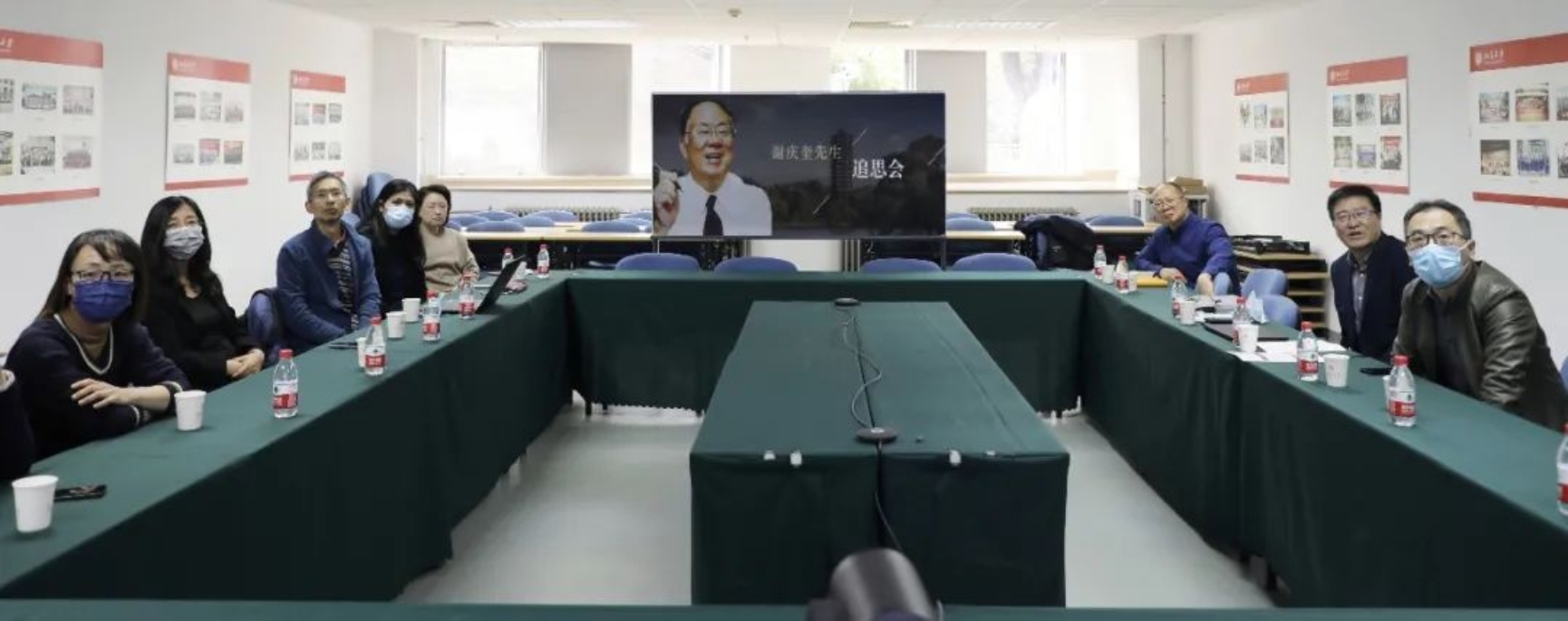 谢先生的追思会是响应弟子们的倡议由弟子们组织的活动。学院提供大力支持,本来按照计划,召开线下会议,中午安排自助简餐,但由于疫情管控,只能线上线下结合来举行。