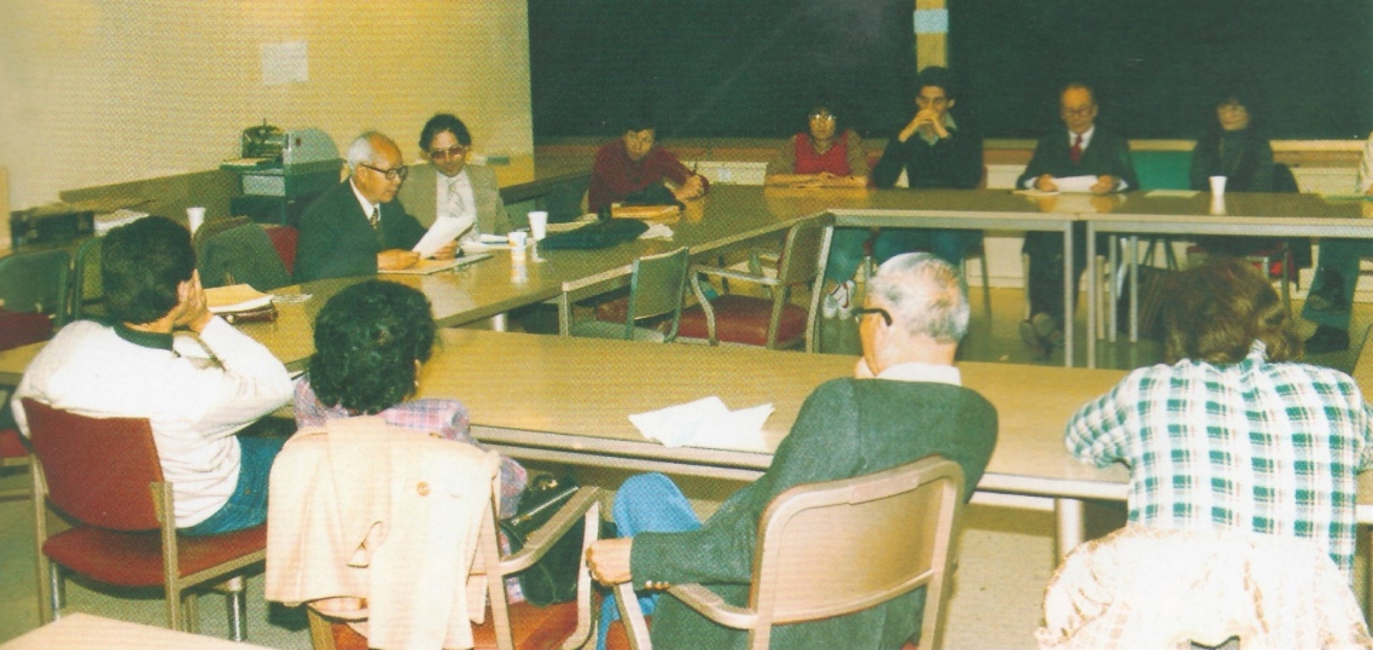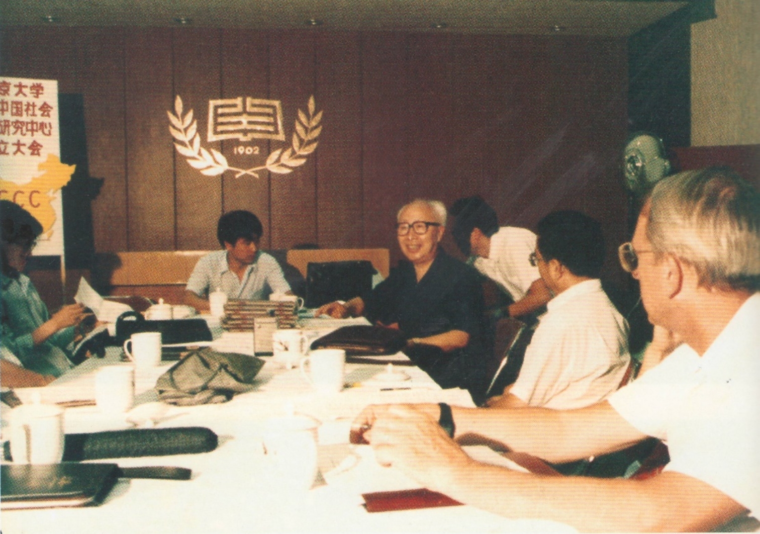 1981年“文化大革命”后,讨论废除“四大”(大鸣、大放、大辩论、大字报),由左至右:陈志尚、赵宝煦、雷洁琼、王铁崖、季羡林。