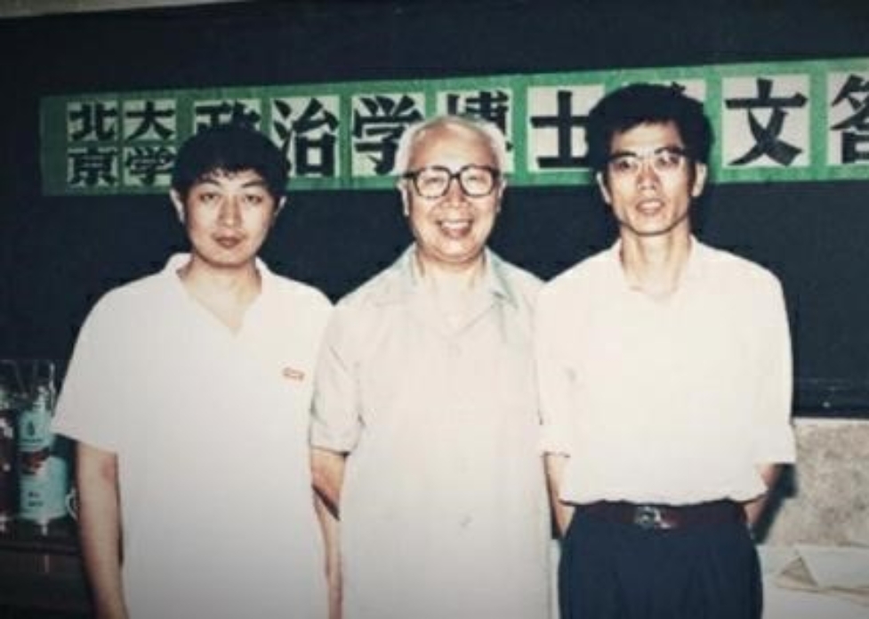 1988年,赵宝煦教授和他培养的中国第一届政治学博士俞可平、王浦劬。