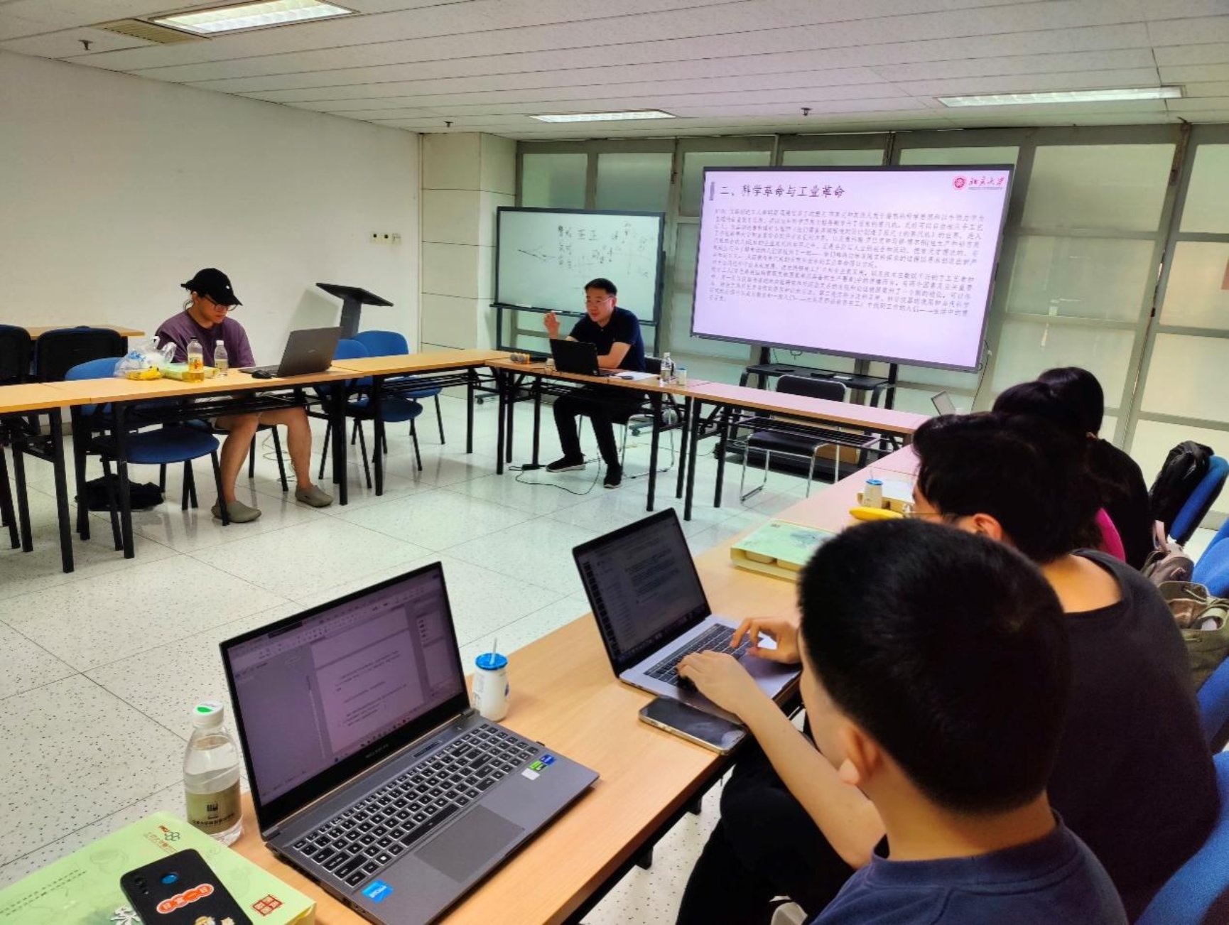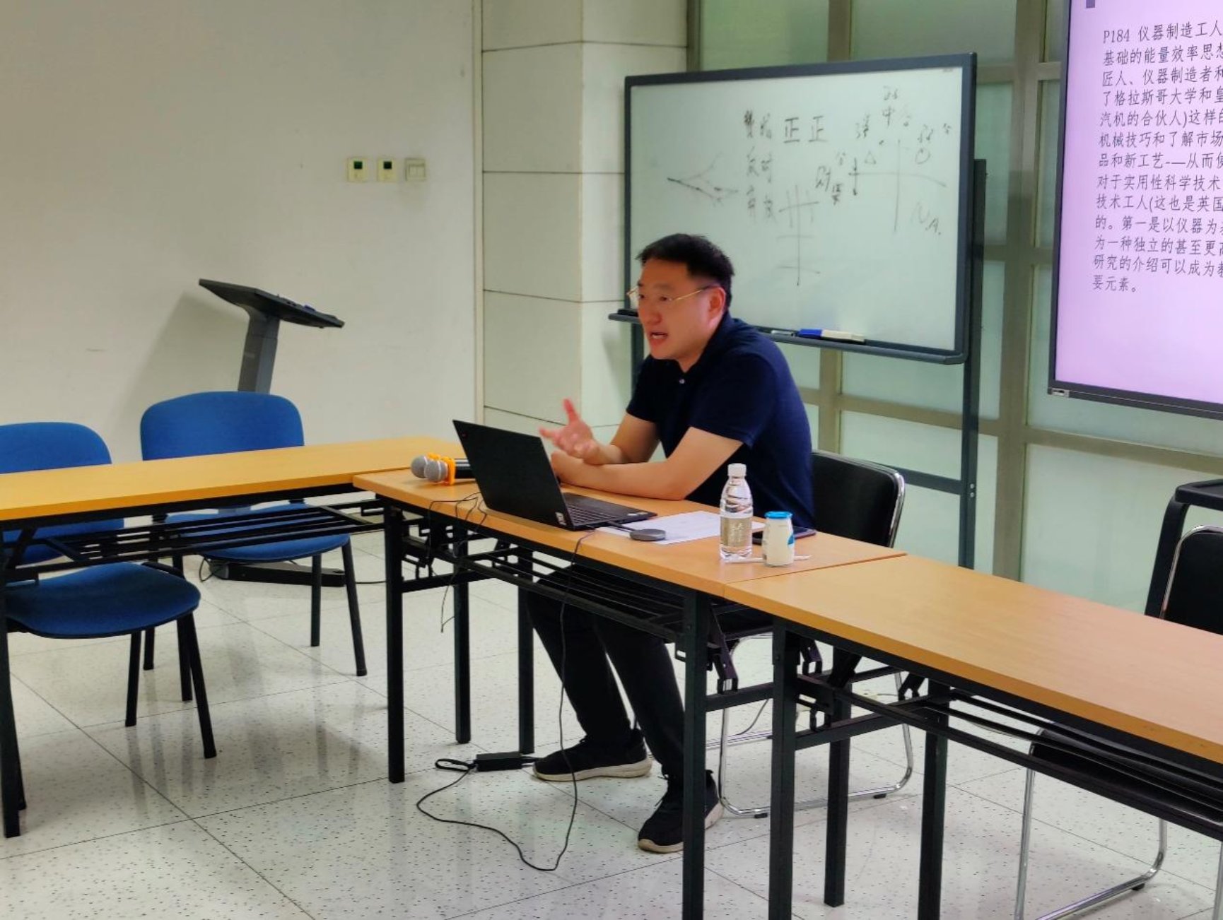 顾老师鼓励同学们积极发表阅读心得并进行交流。同学们在发言中谈到为什么伊斯兰世界没有发生工业革命、微观行动者如何带来宏观结构变化等问题,顾老师结合自己的研究成果依次予以回应,加深了大家对科技政治学的理解。